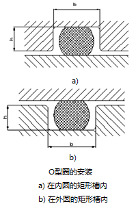 O形圈密封是典型的擠壓型密封。O形圈線徑壓縮率和內(nèi)徑拉伸率等是密封設(shè)計(jì)的主要內(nèi)容,對(duì)密封性能和使用壽命有重要意義。O形圈一般是安裝在密封溝槽內(nèi)起密封作用,如右圖所示。